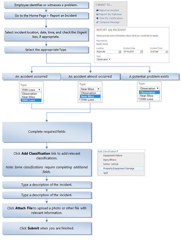 This task presumes that you are an employee who is logged into the system and wants to report an incident at your workplace. Follow the steps on this page to report the incident.