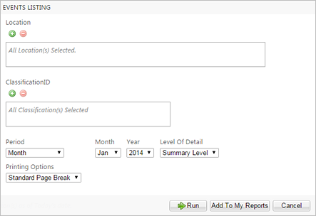 Only displayed if Custom Date Range is selected in the Period parameter field. |